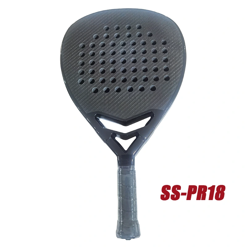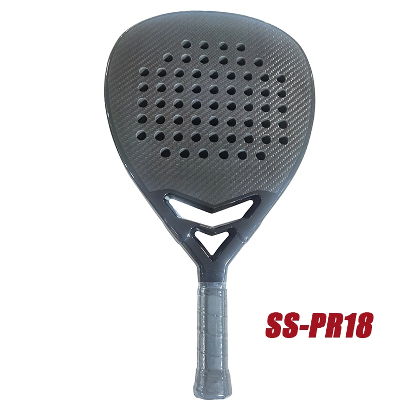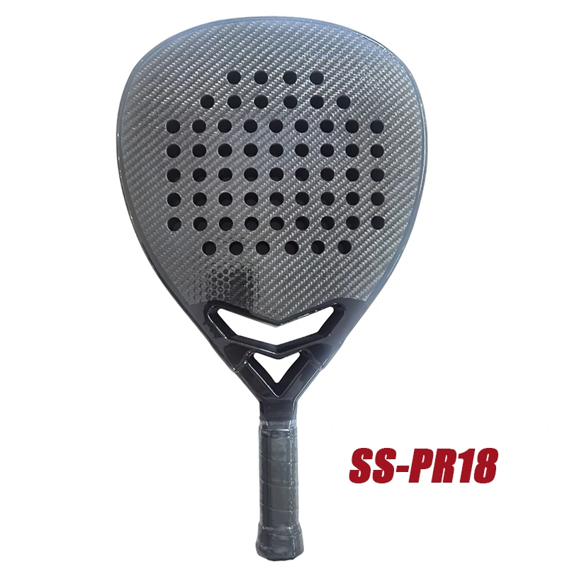 Προσαρμοσμένο σχεδιασμό Diamond 3K Carbon Padel Racket με Smart Bridge Μοντέλο SS-Pr04είναι πλήρης ρακέτα άνθρακα. Για το πρότυπο SS-PR18, τα υλικά προσώπου είναι 3Κ ίνες άνθρακα, το υλικό πλαισίου είναι πλήρες άνθρακα και πυρήνας μνήμης EVA. Το 3K Carbon είναι τα δημοφιλή υλικά, είναι Warp και Weft Knit, περιλαμβάνουν τα πλεονεκτήματα του υαλοβάμβακα και του άνθρακα, σταθερής απόδοσης. Η περιοχή της καρδιάς είναι ειδικά σχεδιασμένη με έξυπνη γέφυρα για επιπλέον ακρίβεια και έλεγχο.